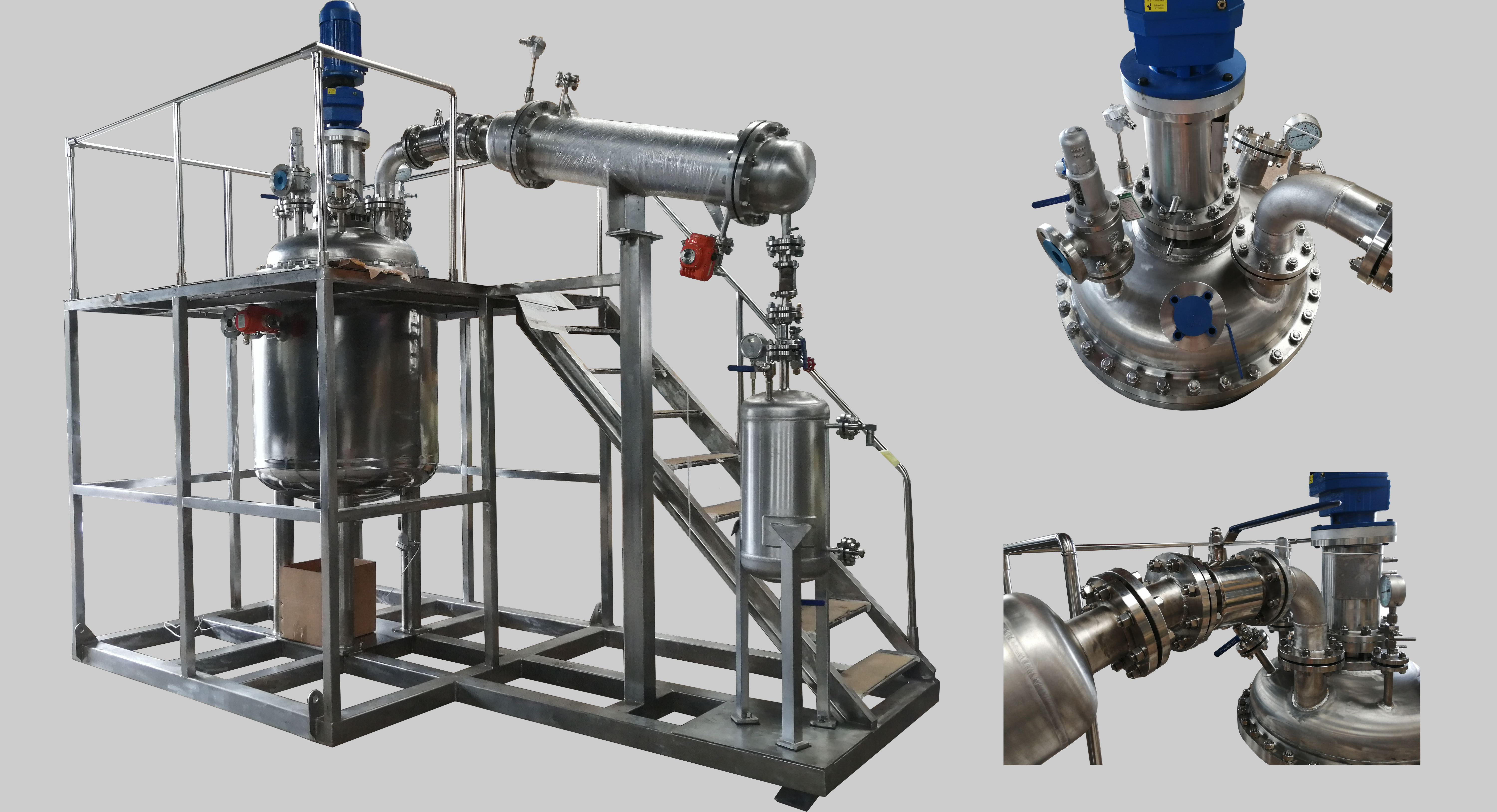 加氫反應分為吸熱反應和放熱反應,有些加氫反應在反應過程中會釋放大量的熱能。為了生產安全,并及時降低釜內溫度,有些工藝要求釜內配大面積的冷卻盤管。此時單層冷卻盤管無法滿足工藝要求,需要雙層或更多層盤管有效及時降溫。正威機械生產的6層盤管內配吸氫攪拌槳,加…
